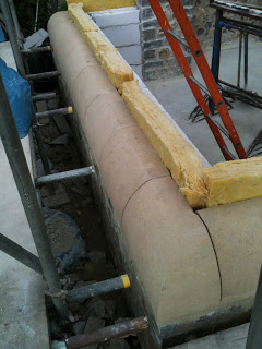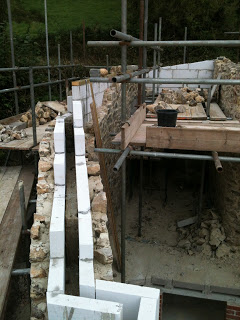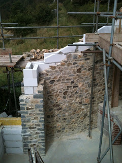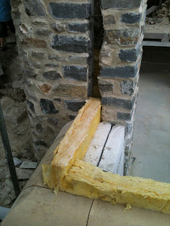 The new walls are 600mm thick in order to have structurally stable stonework, and 100mm of insulation. Dressed Limestone cill pieces have been chosen to complement the Chert , which is the creamy coloured local stone which is being used. The stone choice is an exact match to the existing cottage and the local authority Conservation Officer was consulted on site when deciding final details.