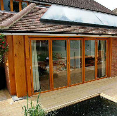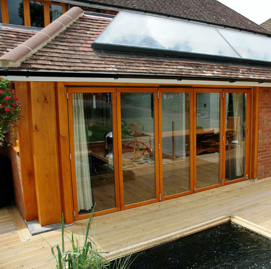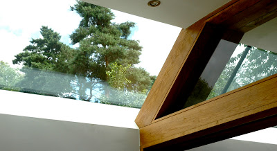 View from inside. The continuous rooflight and oak sliding folding doors provide a great connection with the exterior throughout the seasons.
