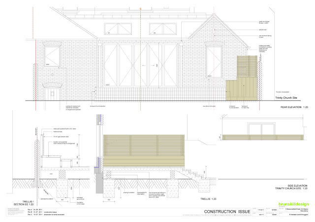 The drawing below is one of the working drawings we produce for the project, along with a full specification and schedules for items such as finishes.