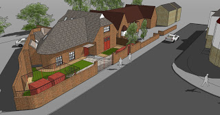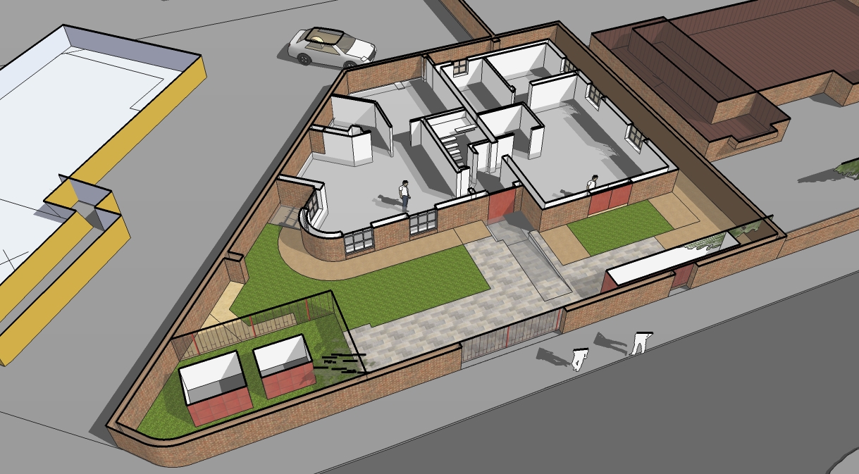 Planning permission has now been granted for a group of apartments designed by Brunskill Architects on a tight city centre corner site. This is a sensitive addition to, and refurbishment of, a disused electricity substation. The original building is locally listed and sits within a Conservation area. The design is arranged to sit well within the streetscape and to maximise space and light to the internal areas. It was important not to detract from the charachter of the original building. Discussions with the local authority enabled successful resolution of the plans. The site is triangular and mostly surrounded by a high brick wall, which led to the design incorporating different types of roof lights to allow light to reach the occupants. Original brick and steel features of the original building will be kept and refurbished.