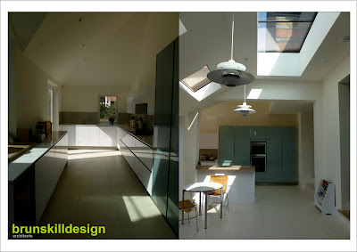 A new opening has been created in the wall, and enormous translucent glass doors by Preedy Glass have been installed. Matching limed oak features, and Glazing Vision rooflight