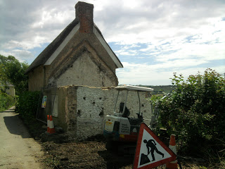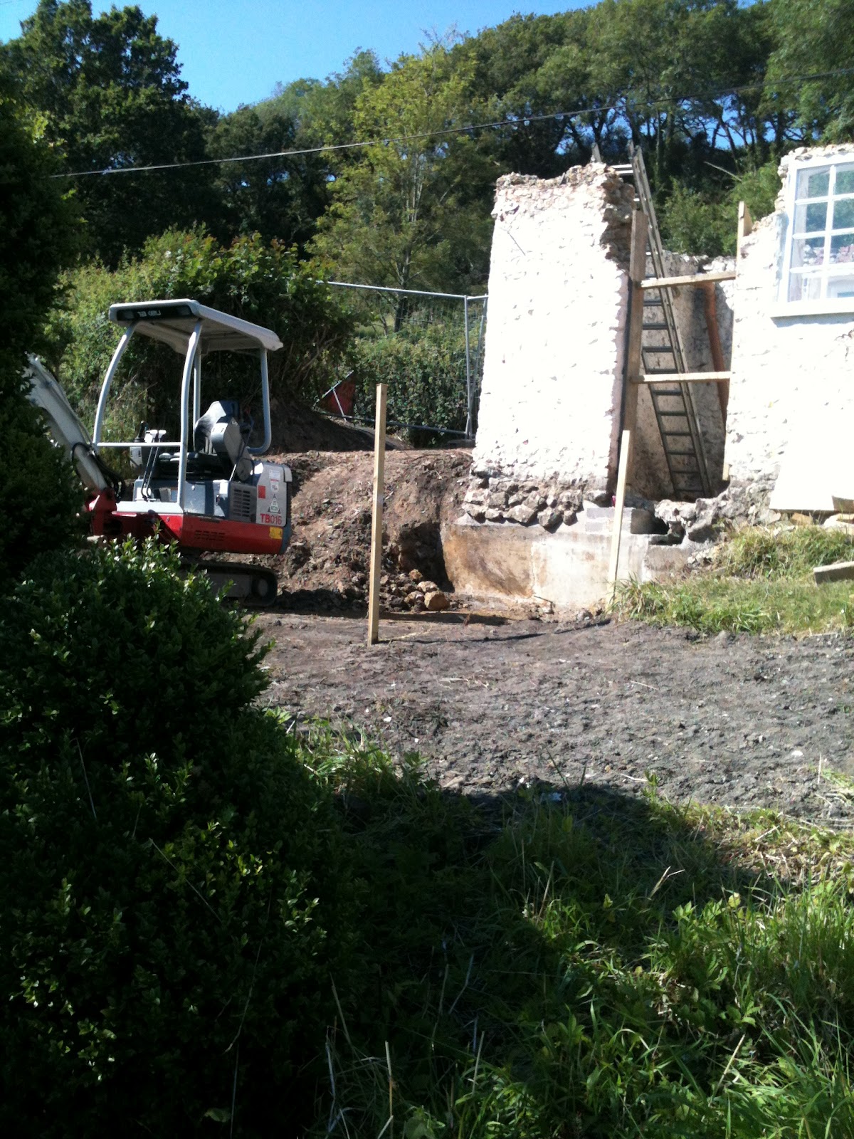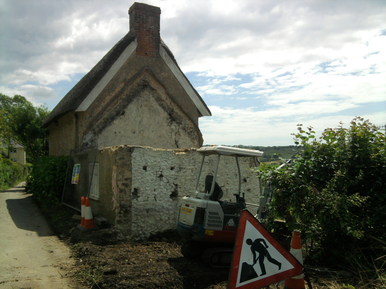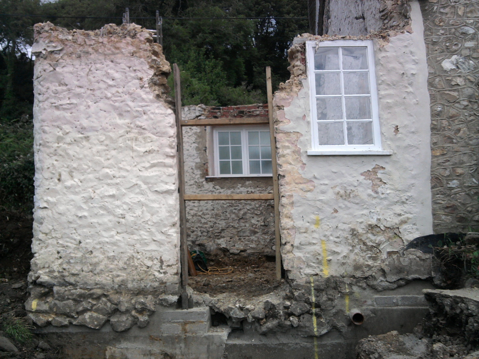 Down a country lane Underpinning works are part of this project Sandblasting has been done Local Chert and Lias stone New foundations for wetroom Bread oven access rediscovered